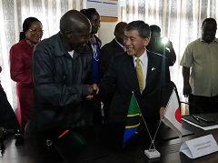 平成27年3月16日、ムベヤ州イレジェ県に於いて、仕事を得るためのスキル習得につながる、適切で効果的な職業訓練を提供するため、松永臨時代理大使と統合地方開発機構(IRDO)の代表者との間で、職業訓練校の建設に関する贈与契約が結ばれました。式典には、案件関係者が多数集まり、本案件の推薦者であるジャネット・ムベネ産業貿易副大臣から日本の支援に対して繰り返し感謝の言葉が述べられ、それらの様子が新聞やテレビで報道されました。