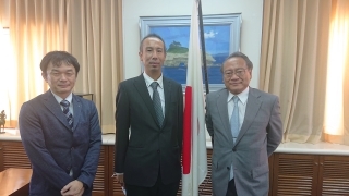 6日、我が国無償資金協力「第二次ニューバガモヨ道路拡幅計画」の拡幅工事を完成させた「株式会社NIPPO」より海外事業本部 海外支店総務部 総務グループ課の釣敏和課長および同海外支店舗装事業部 工事グループの小川泰弘氏が当館を来訪されました。